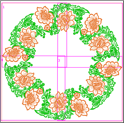 Возможность заполнения вышивкой "Фигурная сетка" по Лекалу (1-объект,2-лекало,3-результат):