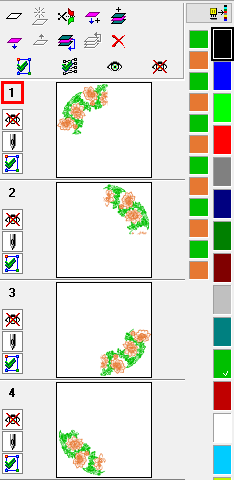 В отчёте можно указать конкретные иглы на выбранных цветах и тогда внизу отчёта будет печататься список смен игл по порядку - это удобно, если смен цвета много, долго подбирать по установленным нитям и есть вероятность ошибиться.