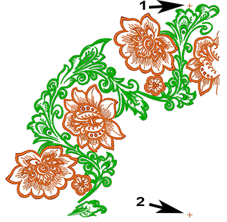 Техника заполнения объект "Оттенок">. Указанная область заполняется линиями с заданными плотностью и рисунком. Область задается парными точками. Но кривую форму могут иметь не только боковые описывающие линии, но и промежуточные направляющие линии. Рисунок заполнения может выполняться с учетом случайной погрешности. В алгоритме расчета позиций стежков так же может участвовать случайное распределение. Эта техника заполнения чрезвычайно интересна при программировании натуральных объектов (цветов, листьев и т.д.), а так же при создании легких дизайнов для постельного белья, трикотажа и т.д.