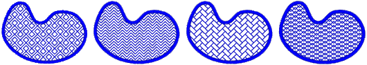 Техника заполнения под названием "Ракушка". Позволяет заполнять области стежковыми линиями по определённой форме. Плотность заполнения настраивается и может быть с прямым и обратным градиентом. Пример использования: